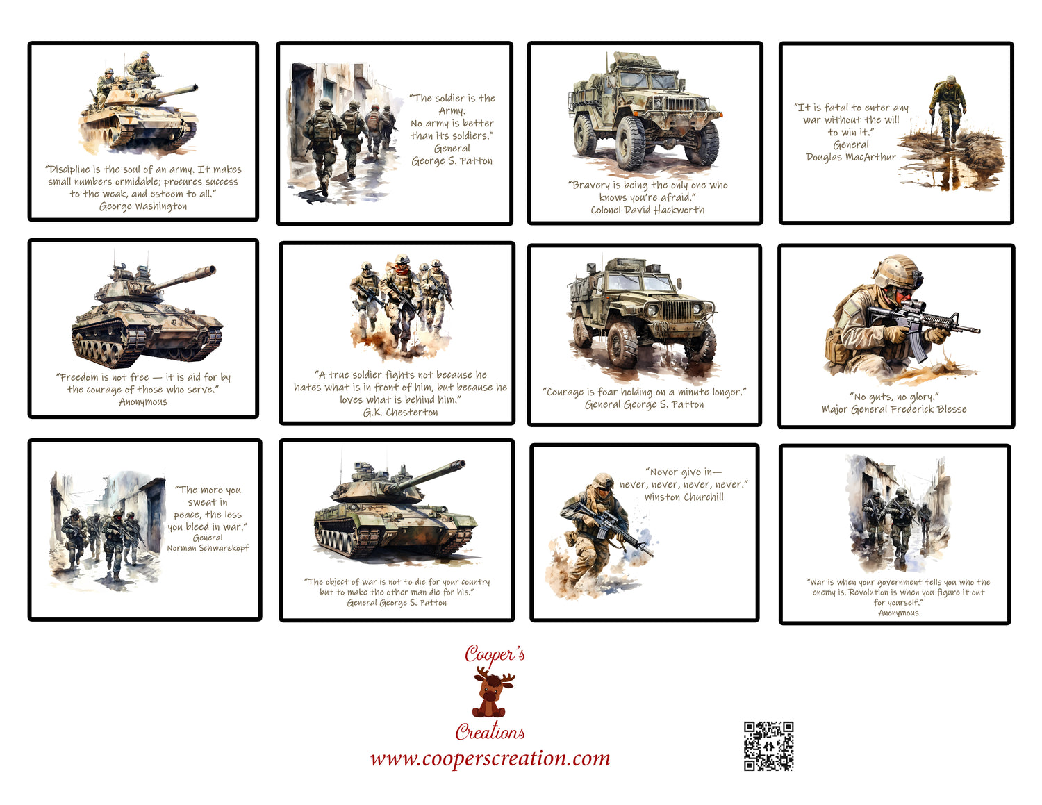 This is an Army calendar with different inspirational quotes from military leaders. Each month features a different picture and quote.