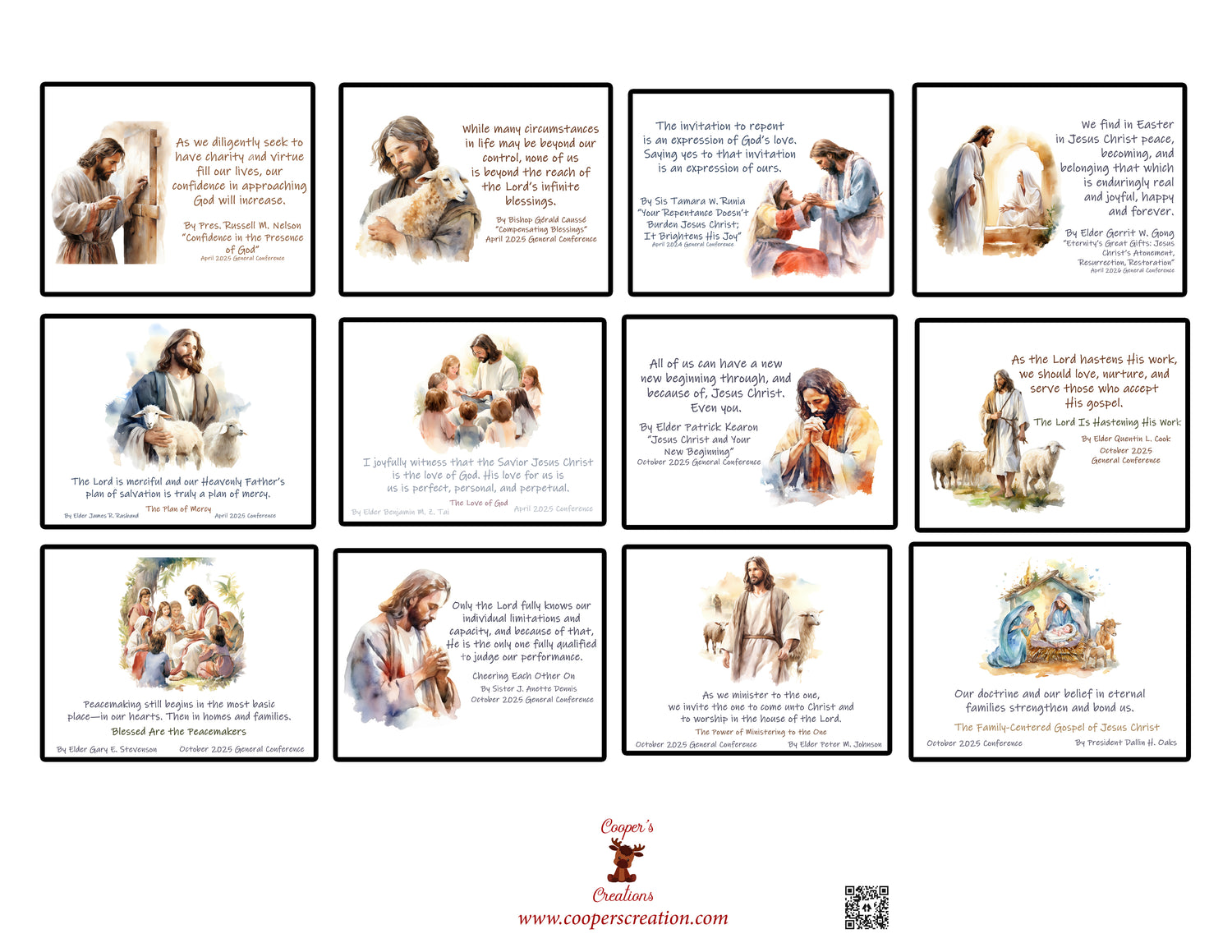 This is a General Conference Quote calendar. Each month features a different picture of Christ, accompanied by a General Conference quote from the April and October Conferences of 2025.